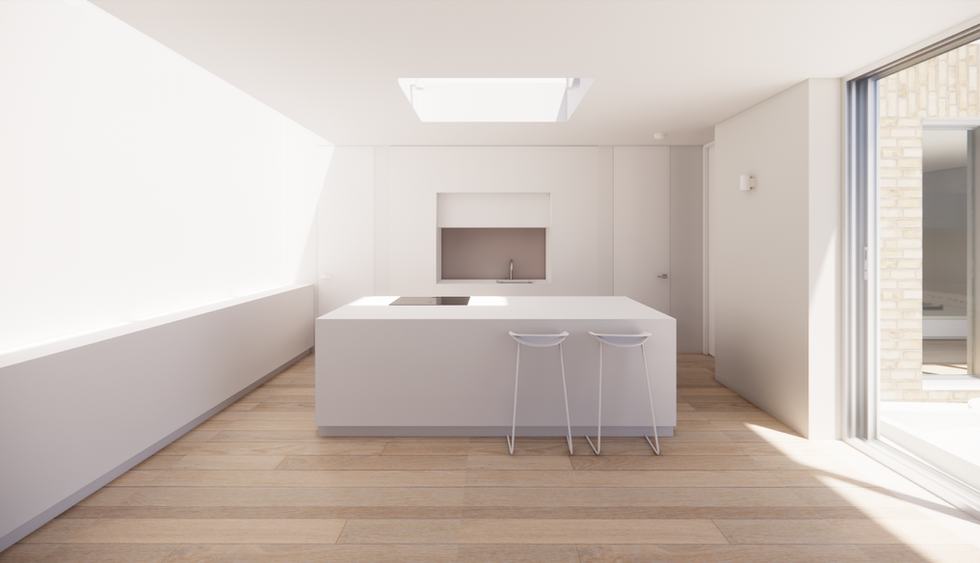 The project has evolved through several iterations, gradually extending the ground floor to embrace the garden more fully. The new architecture wraps around the boundary to form a landscaped courtyard, carefully negotiating relationships with neighbouring houses and party walls: overlooking, daylight and acoustic performance were all central to the development of the design and its detailing.